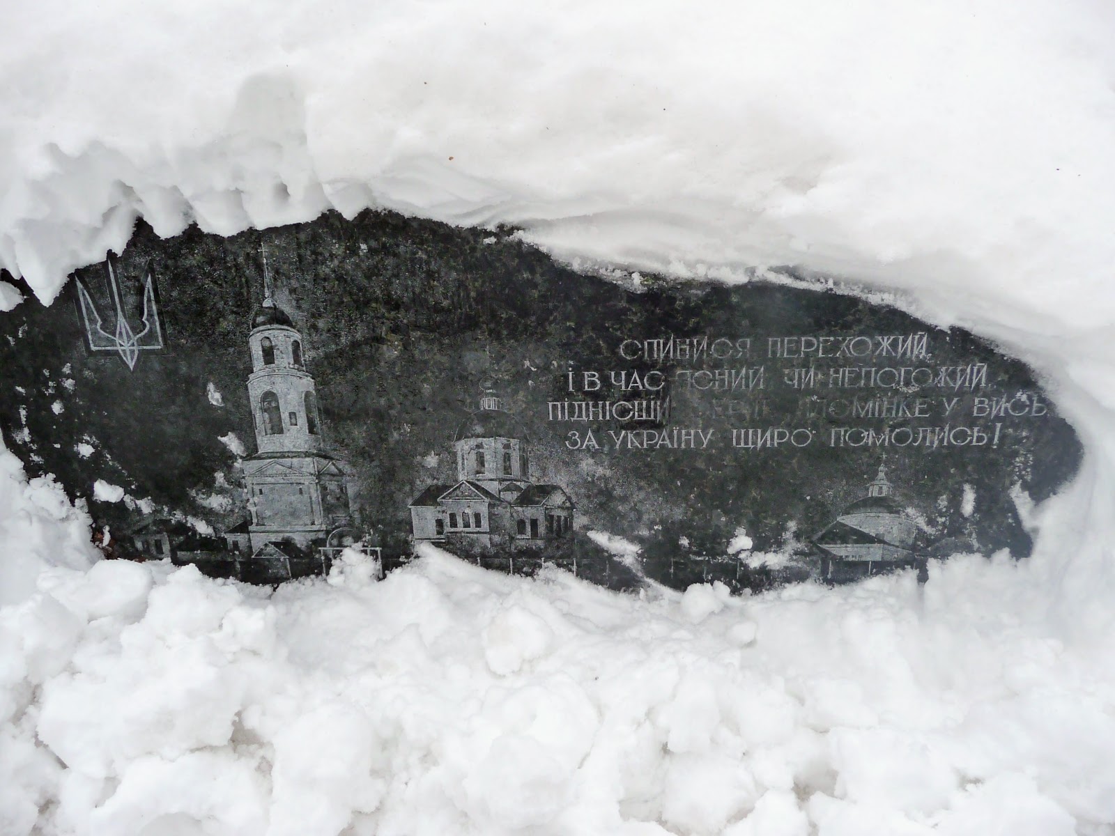 Із західного боку обителі за цегляною огорожею споруджений пам’ятний знак загиблим під час гітлерівської окупації мирним жителям і воїнам-визволителям.